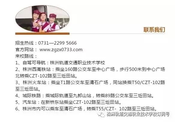 根據(jù)教育廳相關(guān)文件精神,“進一步擴大單招專業(yè)范圍,將單招專業(yè)擴大到招生高校全日制三年制大專所有專業(yè),各高校根據(jù)實際在本校專業(yè)中擬定2020年單招專業(yè)”。具體招生專業(yè)建議考生登錄學(xué)校招生網(wǎng)查看單獨招生章程。株洲軌道交通職業(yè)技術(shù)學(xué)校招生簡章2020版本