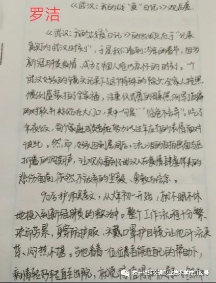 湖南中職1804班周镕知,一個非常沉穩自律的女孩,上課認真,積極思考,作業完成仔細。對于線上教學,周镕知有自己的看法,她說:我認為,線上教學的效果,主要還是取決于同學們的學習態度,在上課時是否會準備好書本、記號筆,是否認真聽課……你有多自律,就有多優秀。希望開學再見時,我們都是更好的自已。