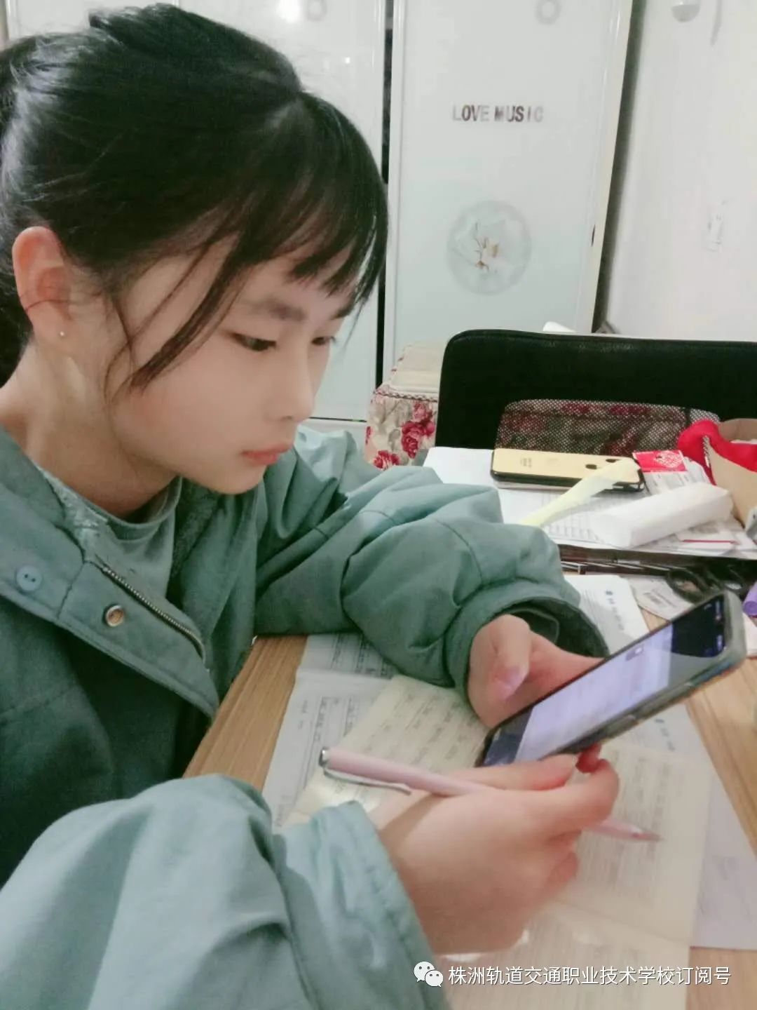 湖南中職1805班徐佳佳,擔任學習委員,不但能自覺學習,還能幫老師督促同學學習和提交作業,工作主動負責效率高。她說:在這個特殊時期,我們雖然不能去學校和同學一起上課,但其實在線上上課有很多好處,第一:在疫情期間的線上學習是一種特別的學習體驗。第二:可以自己用手機截屏老師所講的知識點,讓自己有更充足的時間做筆記。第三:可以復習以前學過的知識。第四:能夠有充足的時間做作業。